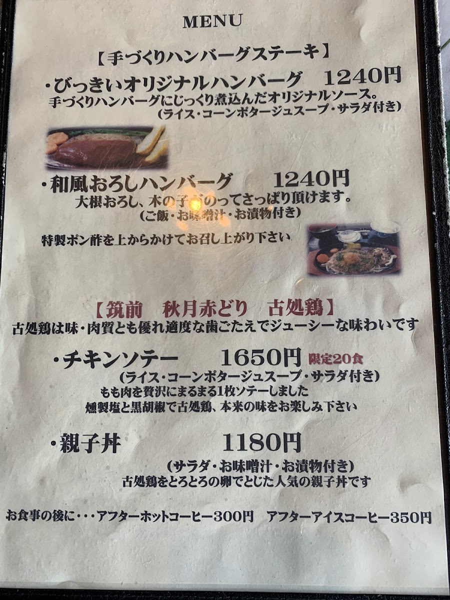 - Signature Dishes: Indulge in the pan-fried chicken, which boasts a crispy skin with tender, juicy meat. Customers rave about the restaurant's burgers, with a standout being the chicken burger made from the region's famous 古処鶏 (Kokushodori).
